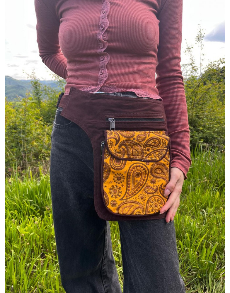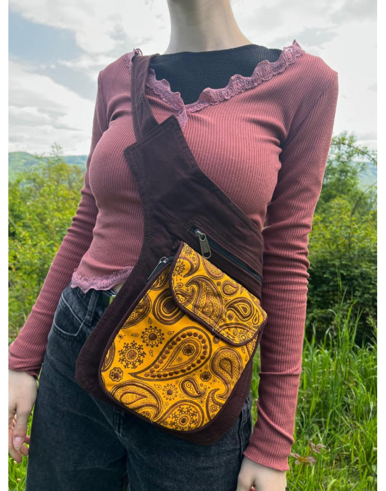 Ladvinka zo 100% bavlny je veľmi praktická taška hlavne pri cestovaní. Doklady, peniaze a dôležité veci si viete uchovať v bezpečí pri sebe. Nám sa tento typ pri našom cestovaní do Indie a Nepálu veľmi osvedčil. Dá sa nosiť aj ako crossbody taška. Má veľmi kvalitné spracovanie, veľkosť popruhu je nastaviteľná, vpredu sú dve hlboké vrecká so zatváraním na zips a vzadu jedno tiež hlboké so zatváraním na zips.