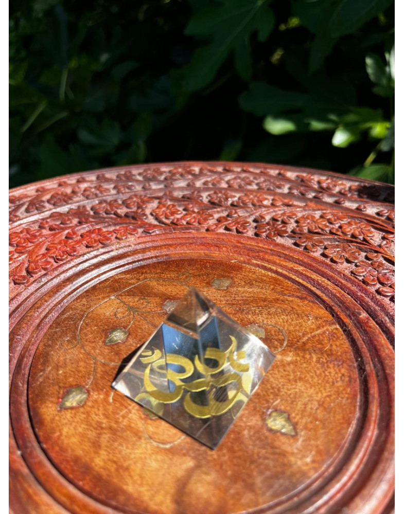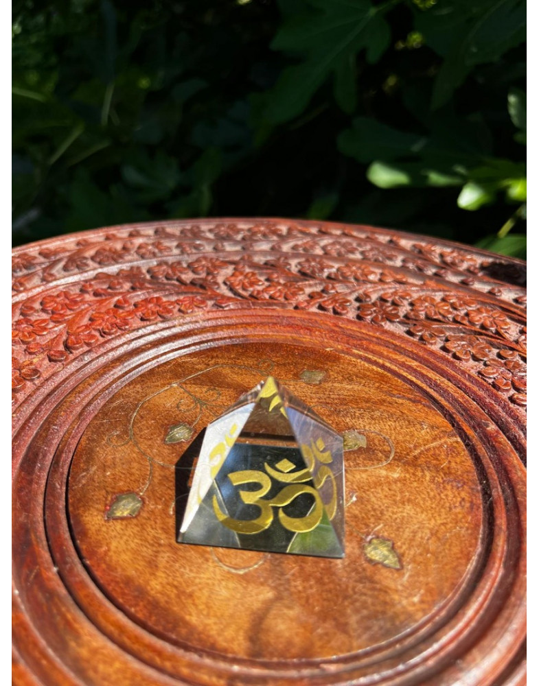 Sklenená pyramída s dĺžkou hrany podstavy 4 cm s OM-om. Silný energetický a ochranný žiarič v priestore... Krásna dekorácia do priestoru, kde by ste radi podporili harmóniu a pozitívnu energiu.