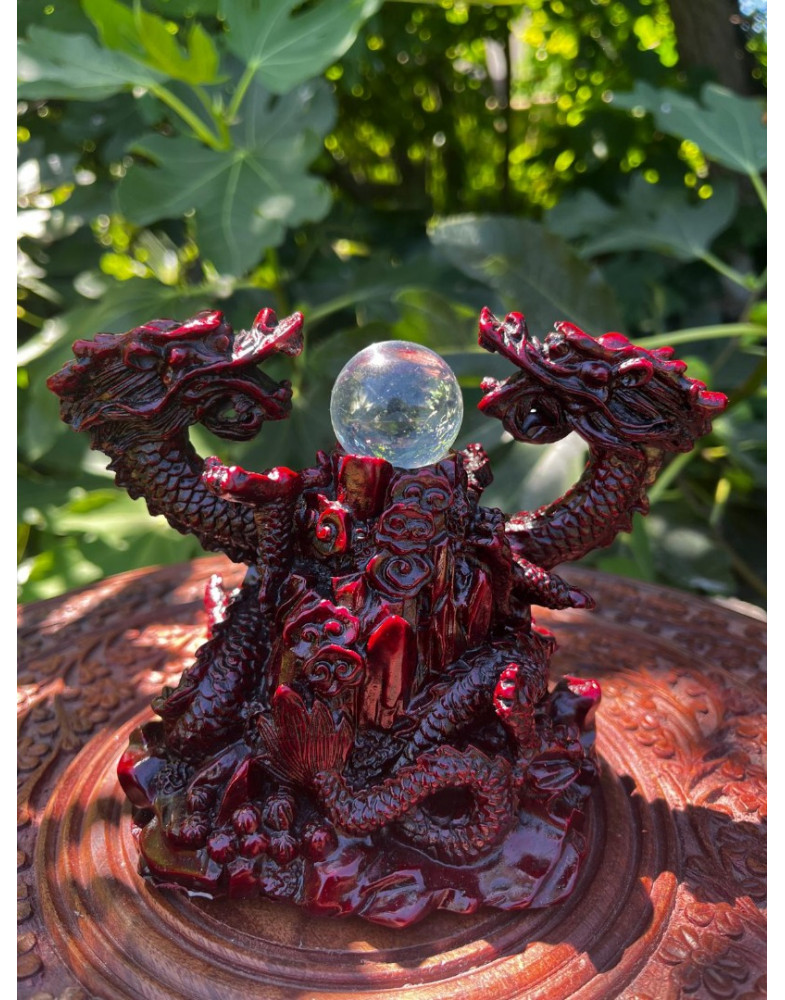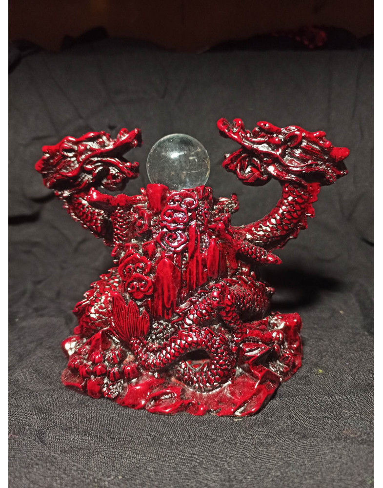 Soška – červený draci so sklenenou guľou (101)